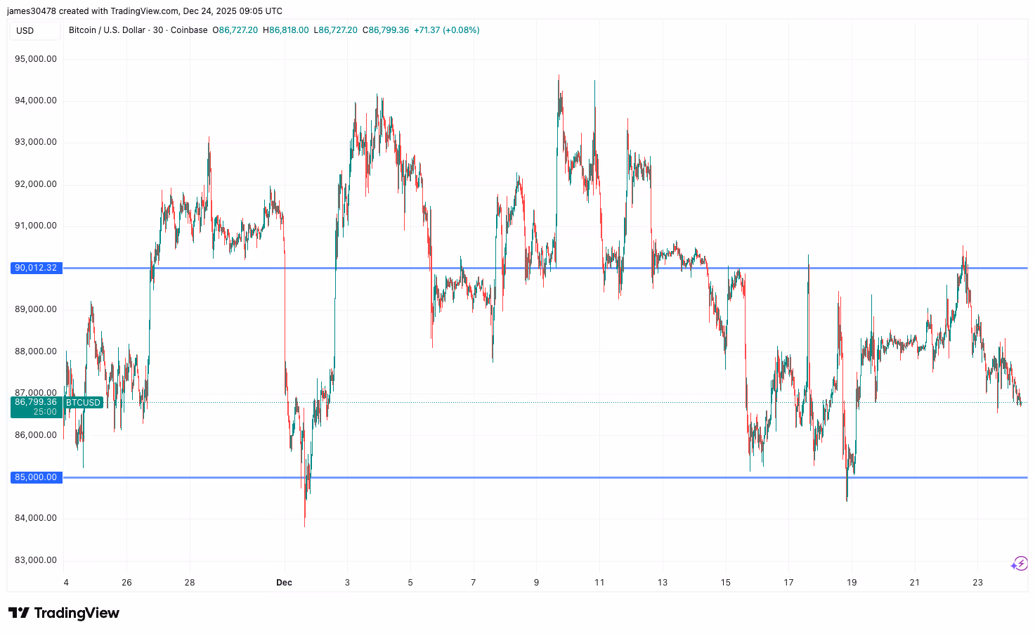 Bitcoin Mendekati Breakout dari Area $85K–$90K